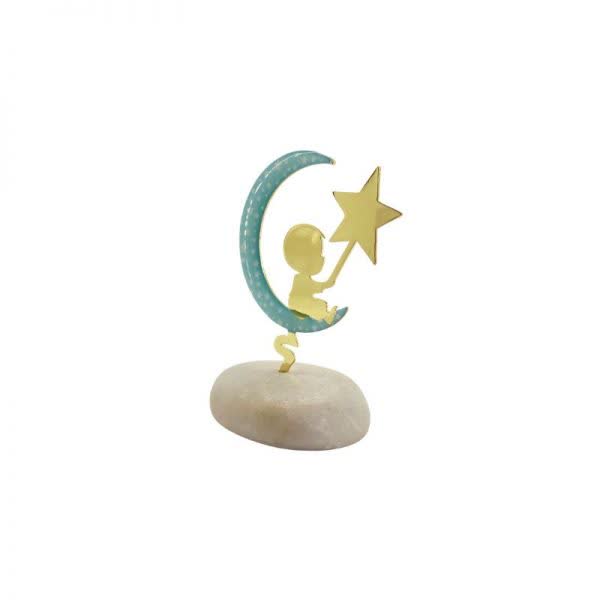 Βότσαλο φεγγάρι με αγοράκι σιέλ 8 εκ. x 6 εκ. (1 τεμ.)