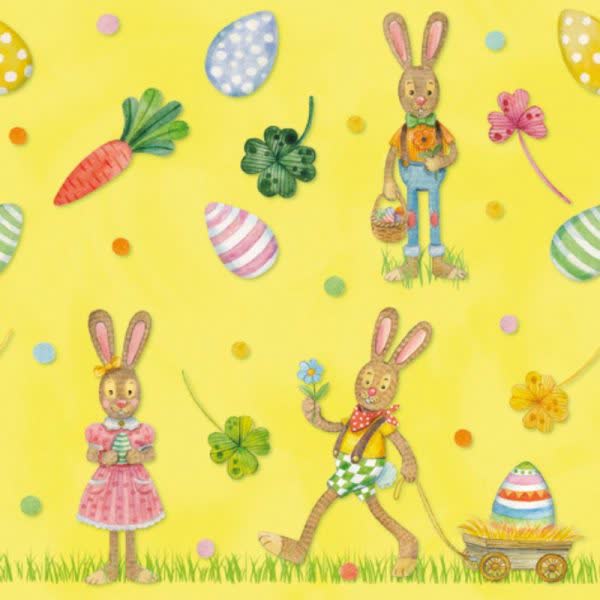 Χαρτοπετσέτα Πασχαλινή με λαγουδάκια, αυγά, κ.α τρίφυλλη 24 εκ. x 24 εκ. (20 τεμ.)