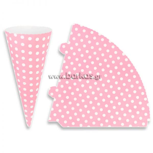Χωνάκι χάρτινο πουά ροζ 21εκ. (12τμχ.)