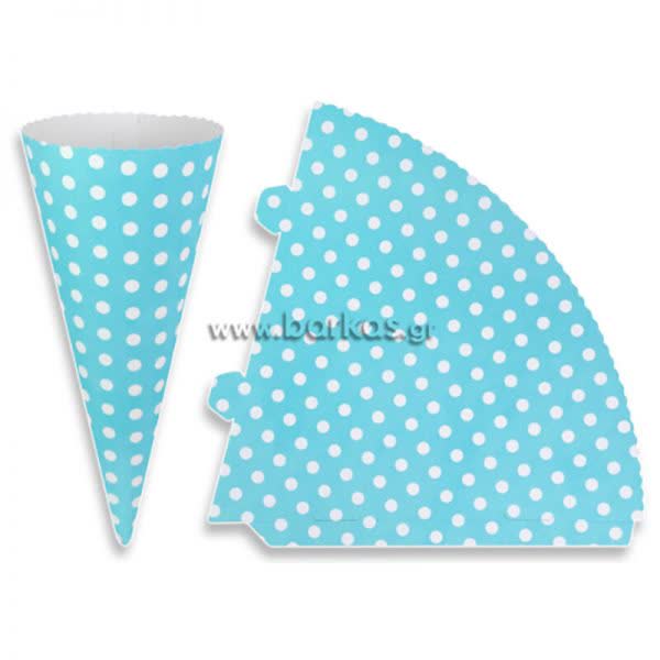 Χωνάκι χάρτινο πουά σιέλ 21εκ. (12τμχ.)