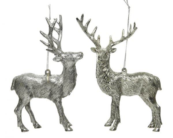 Στολίδι τάρανδος ασημί κρεμαστό σε 2 σχέδια
