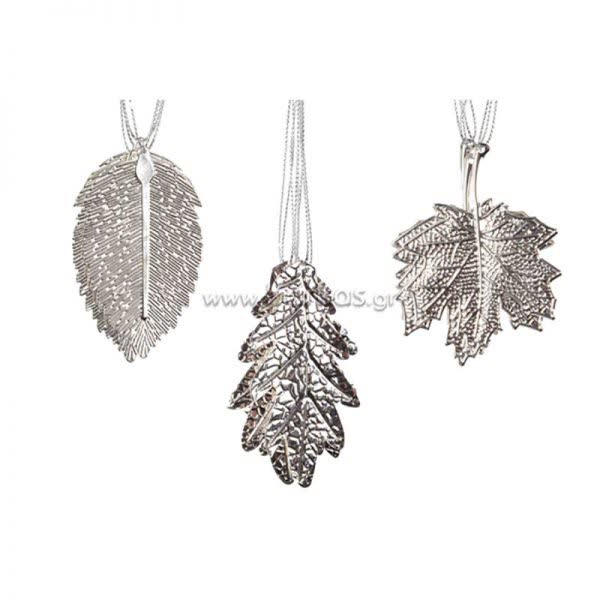 Στολίδι Χριστουγεννιάτικο φύλλα μεταλλικά ασημί σε 3 σχέδια 8 εκ. (4 τεμ.)