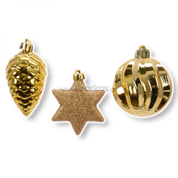 Σετ μπάλες Χριστουγεννιάτικες χρυσές σε 3 σχέδια κουκουνάρι-στρογγυλό και αστέρι (3 τεμ.)