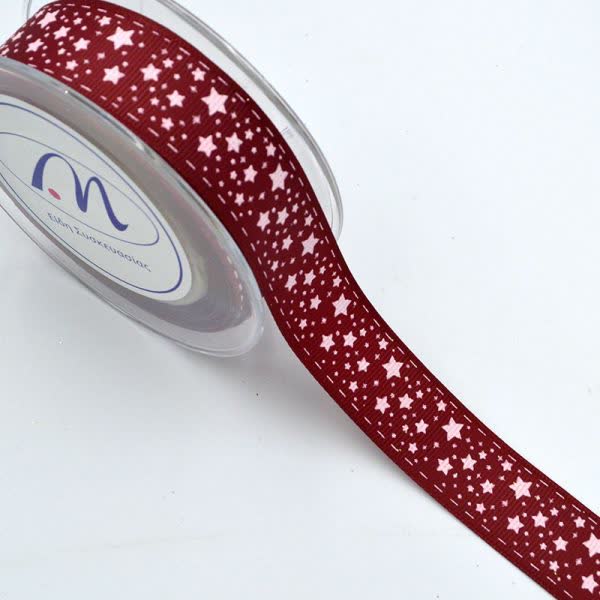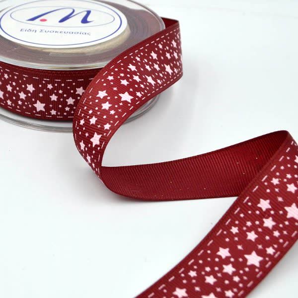 Κορδέλα Χριστουγεννιάτικη γκρο με αστεράκια μπορντό 2,3 cm. x 9 m.