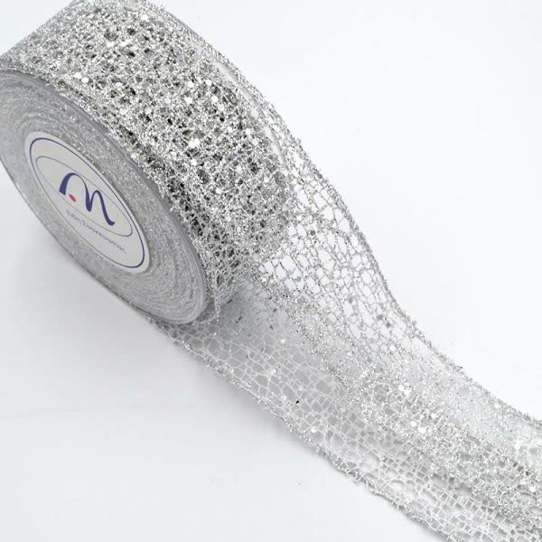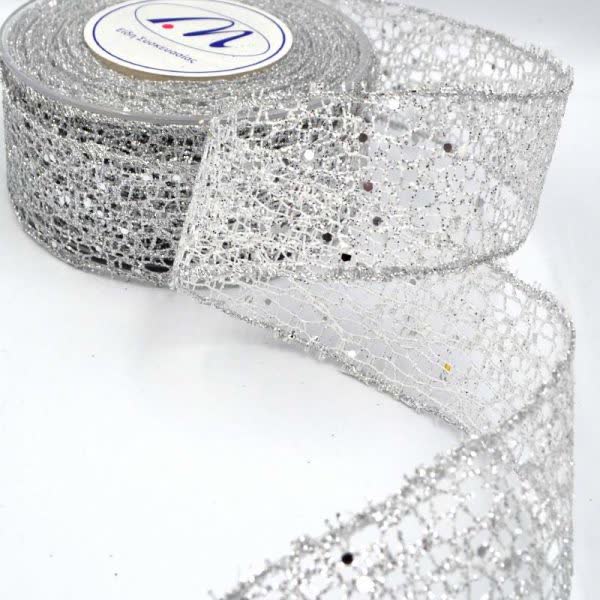 Χριστουγεννιάτικη κορδέλα δίχτυ ασημί 4,3εκ. Χ 9μ.