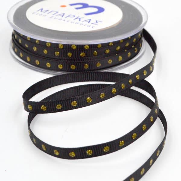 Κορδέλα Χριστουγεννιάτικη γκρο με ανάγλυφο πουά Μαύρο / Χρυσό 0,6 cm. x 23 m.