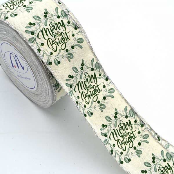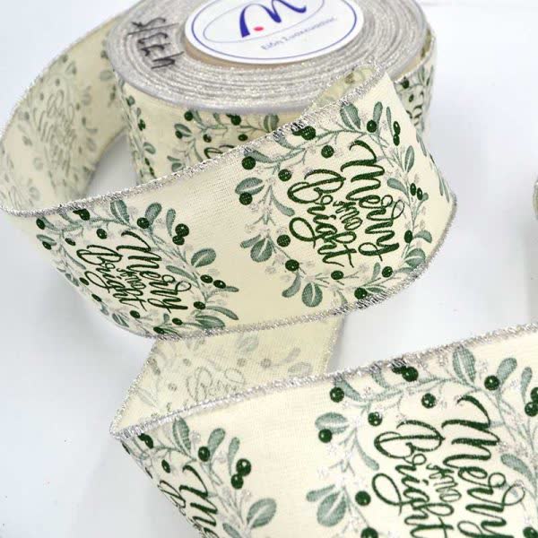 Χριστουγεννιάτικη κορδέλα ιβουάρ Merry and Bright 5,5εκ. Χ 9μ.
