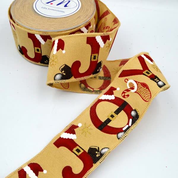 Χριστουγεννιάτικη κορδέλα υφασμάτινη Joyful Boots χρυσό – κόκκινο.