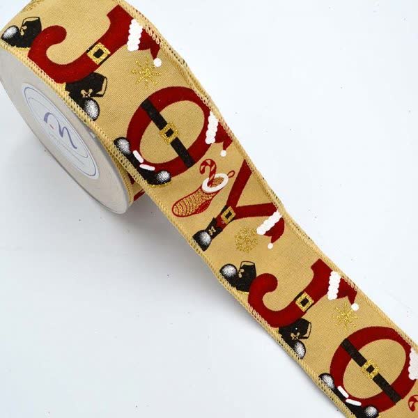 Χριστουγεννιάτικη κορδέλα υφασμάτινη Joyful Boots χρυσό – κόκκινο.