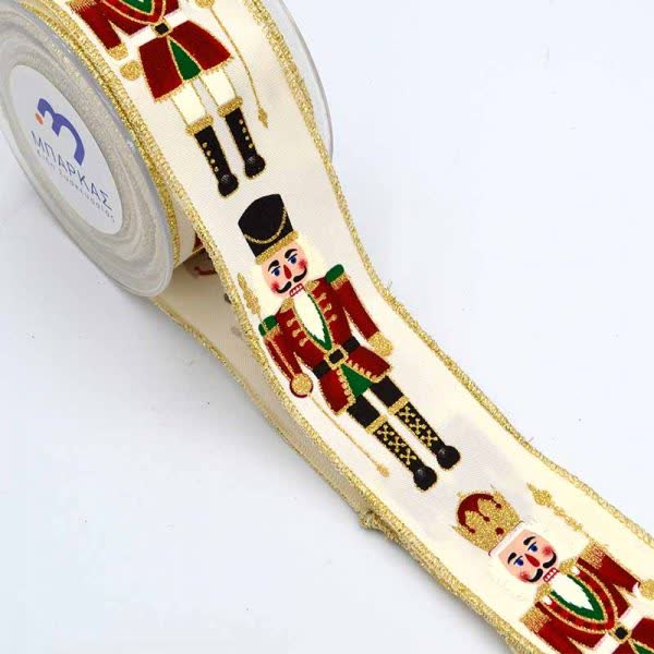 Χριστουγεννιάτικη κορδέλα με καρυοθραύστες – Εκρού 5,5εκ. Χ 9μ.