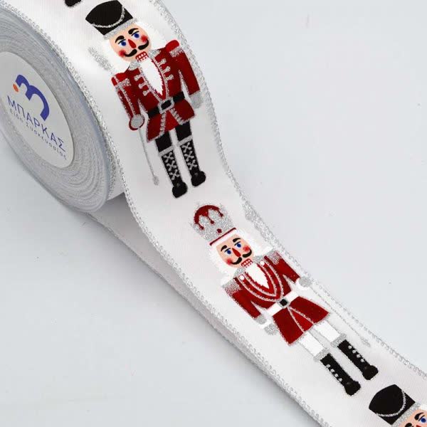 Κορδέλα Χριστουγεννιάτικη με καρυοθραύστες και σύρμα 5,5 cm. x 9 m.