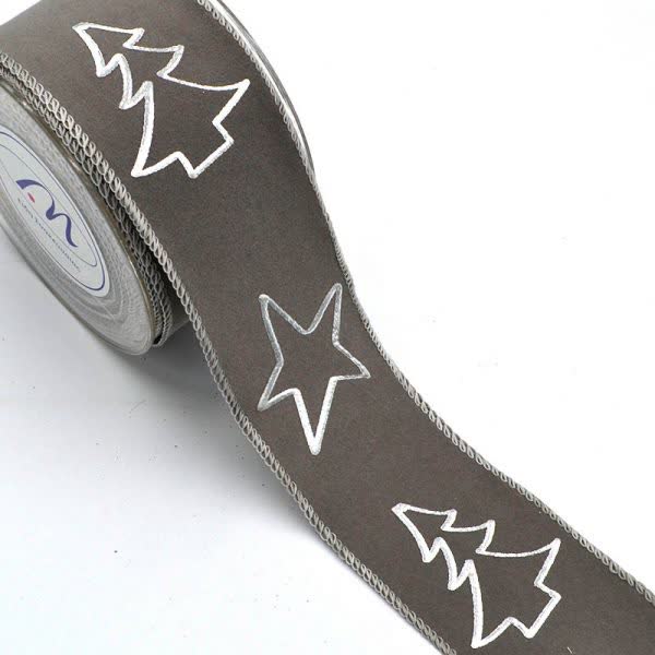 Χριστουγεννιάτικη κορδέλα βελούδινη γκρι με ασημί δεντράκια και αστεράκια.