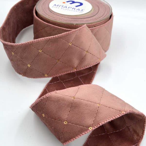 Κορδέλα Χριστουγεννιάτικη βελούδινη καπιτονέ σάπιο μήλο με πούλιες χρυσές