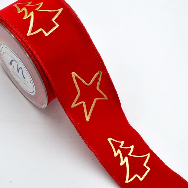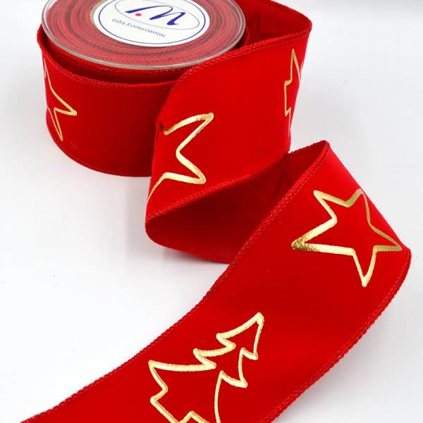 Κορδέλα Χριστουγεννιάτικη βελούδινη με δεντράκι / αστέρι κόκκινη 6 εκ. x 9 μ.