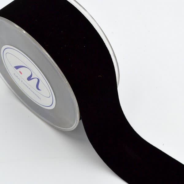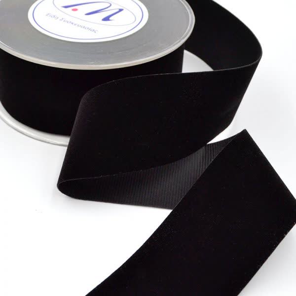 Κορδέλα Χριστουγεννιάτικη βελούδινη μαύρη μονής όψης 4,3 cm. x 9,1 m.