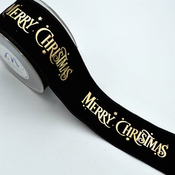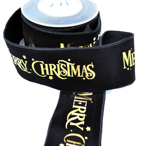 Κορδέλα Χριστουγεννιάτικη βελούδινη Merry Christmas μαύρη 6 cm. x 9 m.