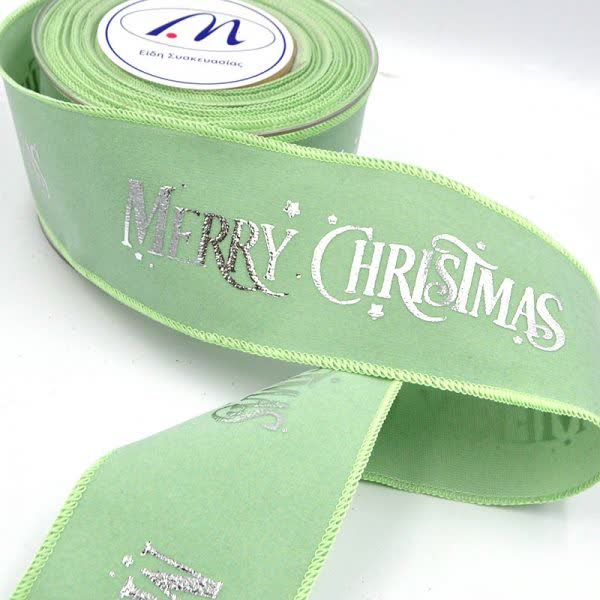 Κορδέλα Χριστουγεννιάτικη βελούδινη Merry Christmas βεραμάν 6 cm. x 9 m.