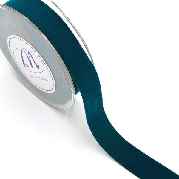 Κορδέλα Χριστουγεννιάτικη βελούδινη πετρόλ μονής όψης 2,3 cm. x 9,1 m.