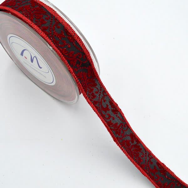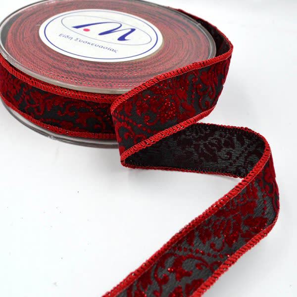 Κορδέλα Χριστουγεννιάτικη vintage μπορντό-μαύρο 2,4 εκ. x 9 μ. (1 τεμ.)