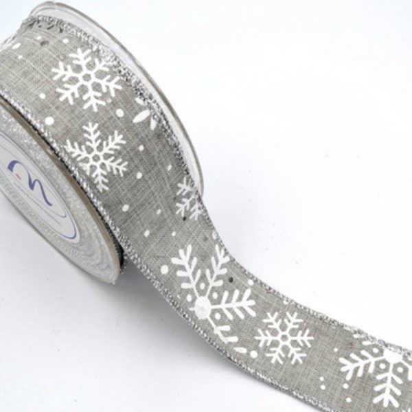 Κορδέλα Χριστουγεννιάτικη με χιονονιφάδες ασημί με σύρμα 4,5 cm. x 9 m.
