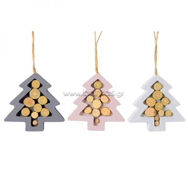 Στολίδι Χριστουγεννιάτικο Δέντρο ξύλινο με μίνι κορμούς δέντρου σε 3 χρώματα