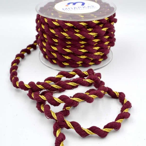 Κορδόνι Χριστουγεννιάτικο δίχρωμο μπορντό / χρυσό