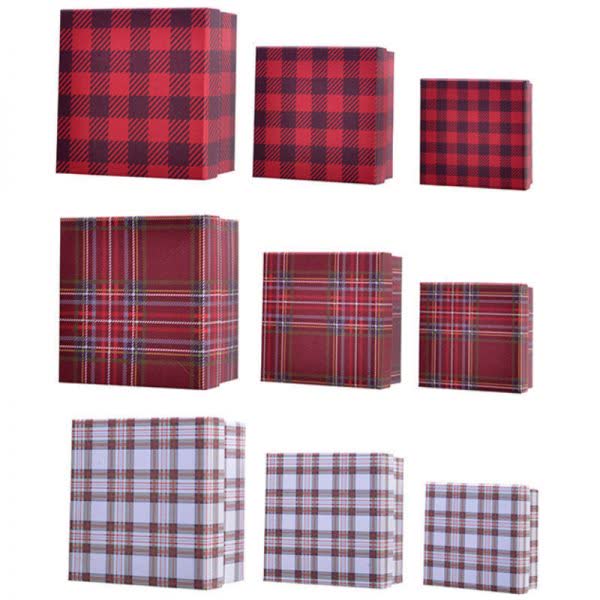 Χριστουγεννιάτικο κουτί δώρου τετράγωνο καρώ Νο1.
