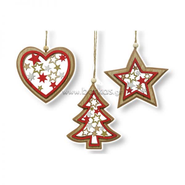 Στολίδι Χριστουγεννιάτικο σε 3 σχέδια με χρυσές λεπτομέρειες