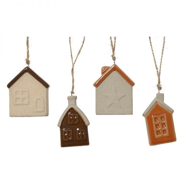 Χριστουγεννιάτικο σπιτάκι διακοσμητικό πορσελάνινο κρεμαστό σε 4 σχέδια 7,2 εκ. (1 τεμ.)