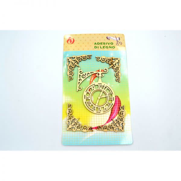 Ξύλινα σχήματα αυτοκόλλητο γωνίες και ρολόι (5 τεμ.)