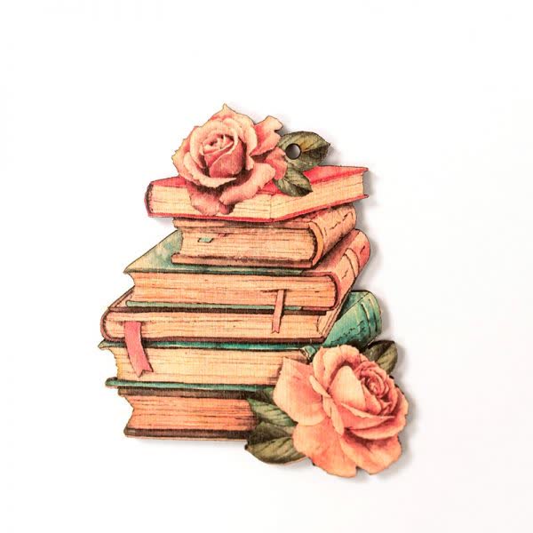 Βιβλία με λουλούδια Vintage ξύλινο με τρύπα 8 εκ. (1 τεμ.)