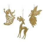 Στολίδι Χριστουγεννιάτικο ξύλινες φιγούρες με άσπρο και μαύρο γκλίτερ σε 4 σχέδια (1 τεμ.)