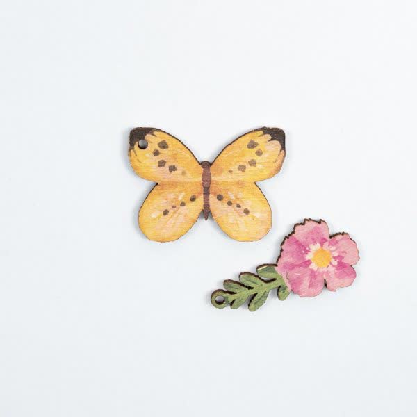 Πεταλούδα – Λουλούδι ξύλινο με τρύπα 5 εκ. (2 τεμ.)