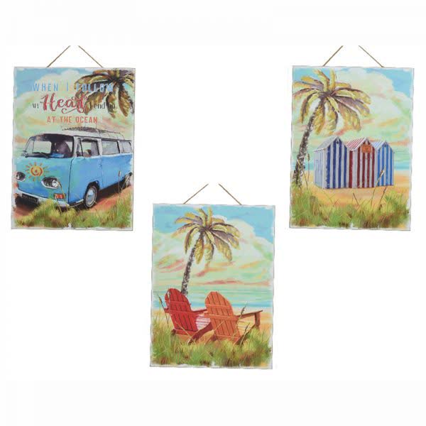 Πινακάκι ξύλινο κρεμαστό σε 3 σχέδια με καλοκαιρινές εικόνες 40 εκ. (1 τεμ.)