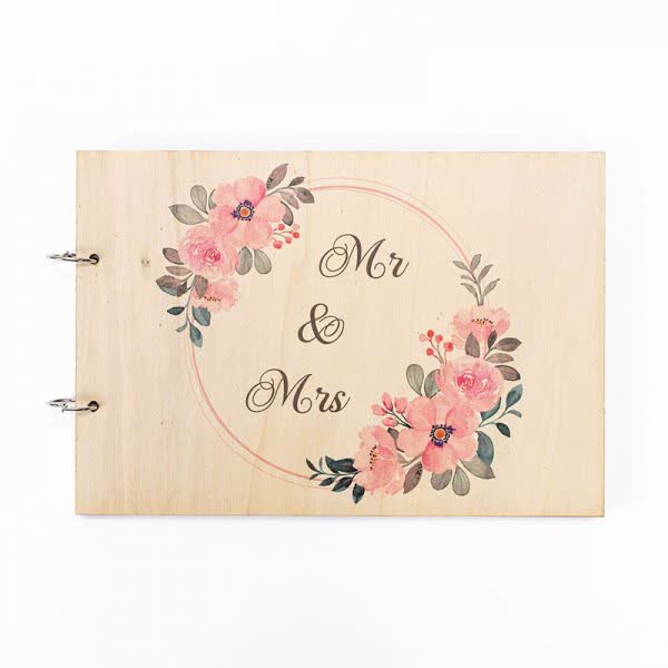 Βιβλίο Ευχών ξύλινο Γάμου Mr. & Mrs. με 25 λευκές σελίδες