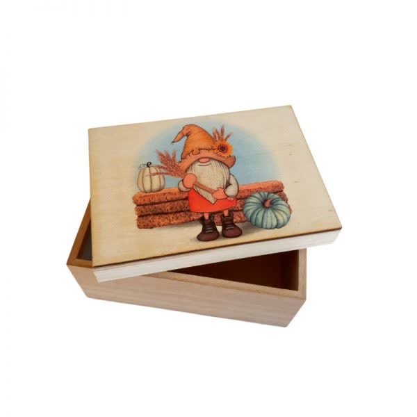 Ξύλινο κουτί με σχέδιο Νάνος με κολοκύθες 20 εκ. x 14 εκ. x 11 εκ. (1 τεμ.)
