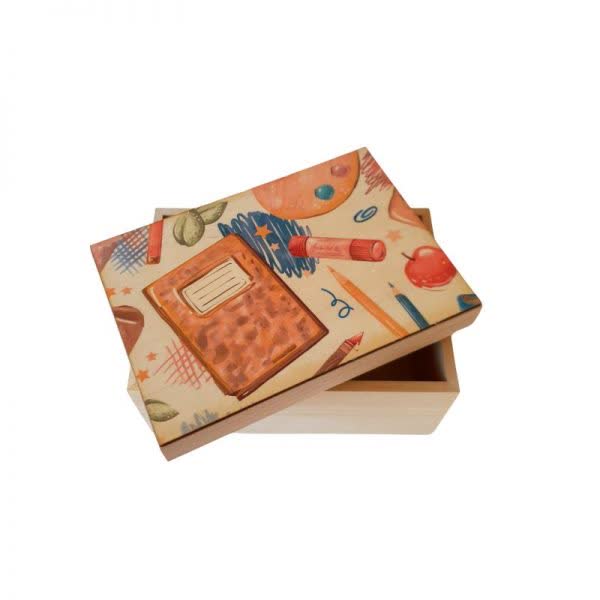 Ξύλινο κουτί με σχέδιο Σχολικά 20 εκ. x 14 εκ. x 11 εκ. (1 τεμ.)