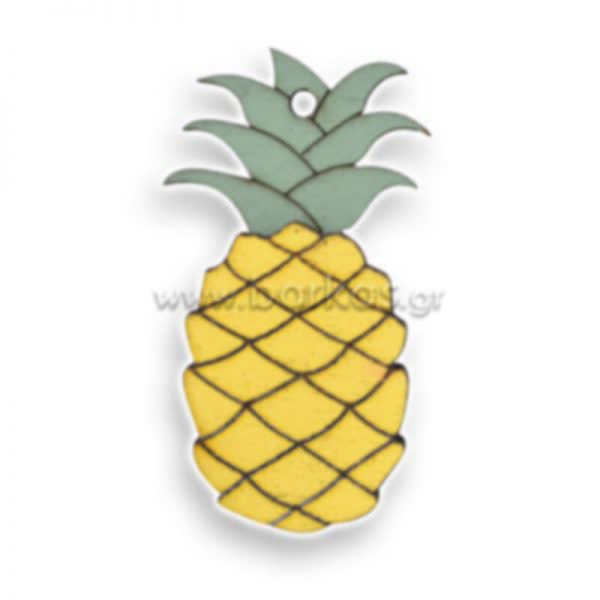 Ξύλινο κρεμαστό ανανάς 3D χρωματιστό 6εκ. x 3,5εκ. (4τμχ.)