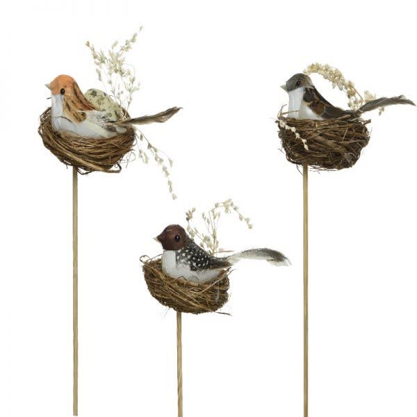 Ξύλινο πικ Πουλάκι σε φωλιά 35 εκ.