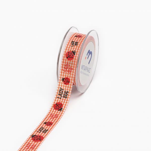 Κορδέλα καρρώ βαμβακερή με Πασχαλίτσα σε πορτοκαλί χρώμα 2,3 εκ. Χ 9,1 μ.