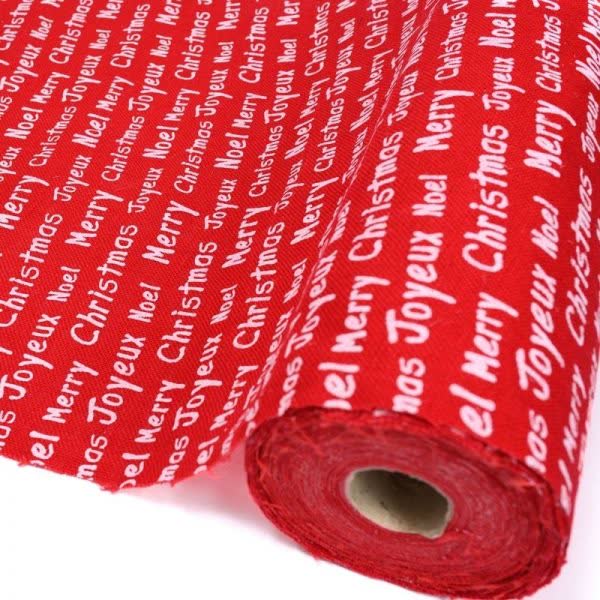 Ύφασμα Χριστουγεννιάτικο λινάτσα κόκκινο με ευχές 58 εκ. x 18 m. (1 τεμ.)