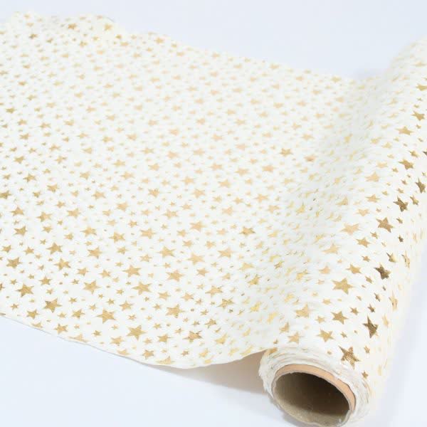 Ύφασμα Χριστουγεννιάτικο βελούδινο με αστέρια χρυσά λευκό 3 μ. x 48 εκ. (1 τεμ.)