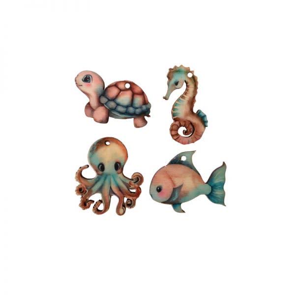 Ζωάκια της θάλασσας ξύλινα σε 4 σχέδια 5 εκ. (4 τεμ.)