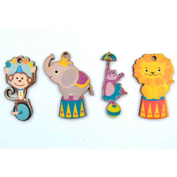Τσίρκο ζωάκια ξύλινα σε 4 σχέδια με τρύπα