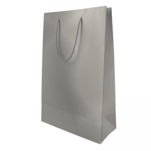 Τσάντα χάρτινη ματ πλαστικοποίησης, με κορδόνι Ασημί 16x10x40