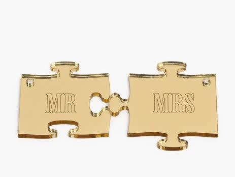 Plexiglass διακοσμητικό παζλ Mr. & Mrs. σε χρυσό χρώμα (1 σετ) 5 εκ.